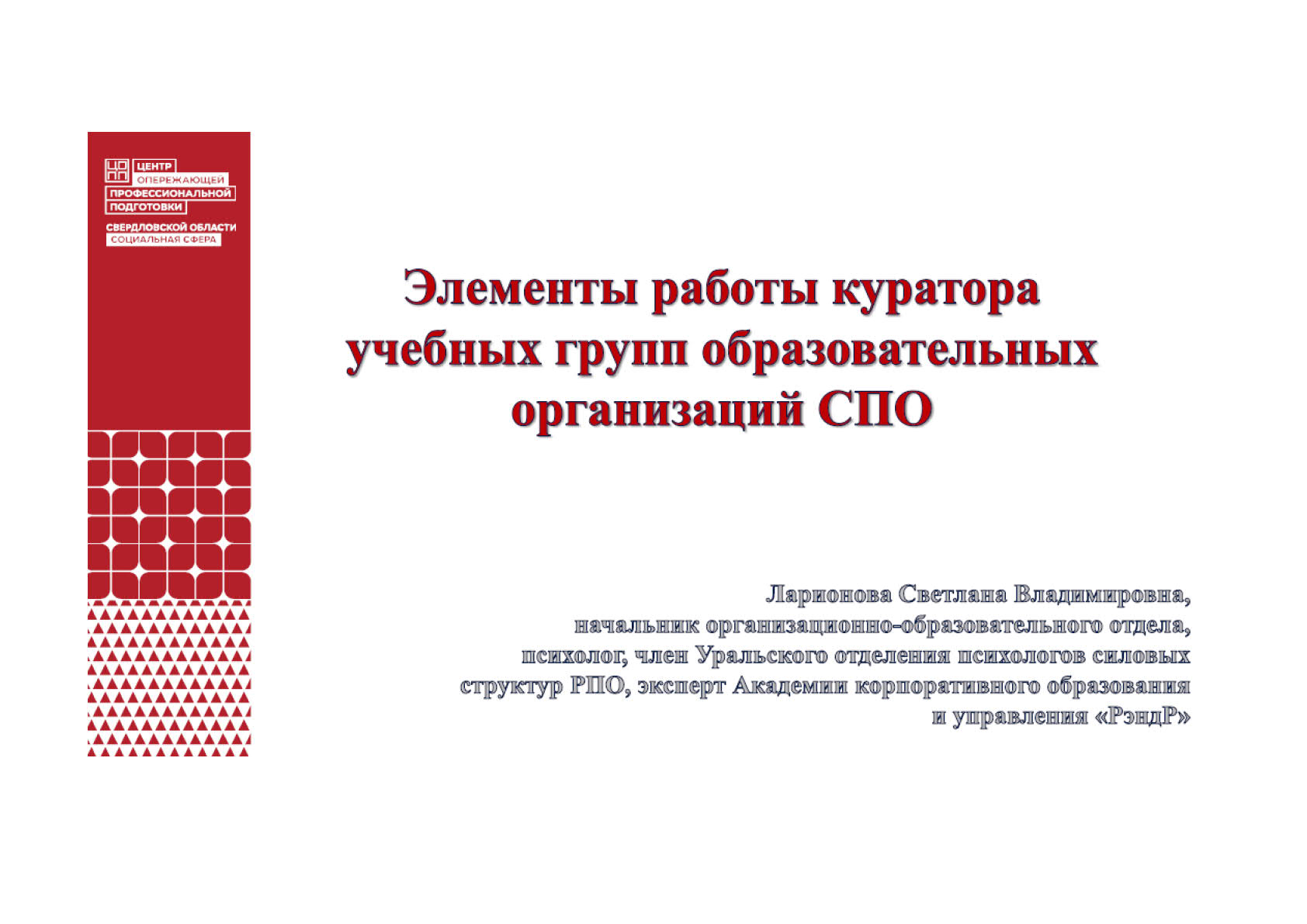 Центр опережающей профессиональной подготовки по направлению «Социальная сфера» в Свердловской области предлагает проведение тренингов, семинаров, мероприятий разного характера, которые наш коллектив поддерживает и с удовольствием примет в них участие вновь!
